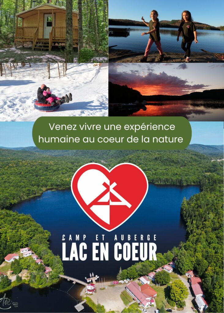 Le Camp et Auberge du Lac en Coeur est un organisme à but non lucratif d’économie sociale qui a pour objectif général de contribuer au projet collectif d’amélioration de la qualité de vie des jeunes en offrant une possibilité réelle de vivre une expérience plein air de groupe, expérience de vie basée sur les valeurs humaines.